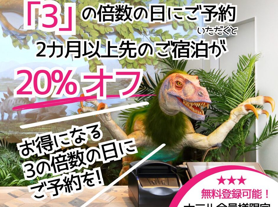 【3의 배수일 한정】회원 한정 조기예약 20% 할인 쿠폰