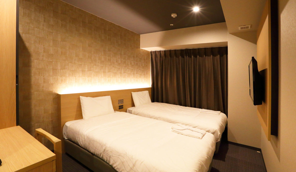 这个房间有两张床,大小为1200cm。我们建议与您的伴侣或朋友以及生意在一起。最多2位成人。 楼层:2〜12F 容量:2(同睡2) 面积16.96〜17.7㎡ 床尺寸:宽1,100mm×长1,950mm 互联网:提供免费无线网络连接。